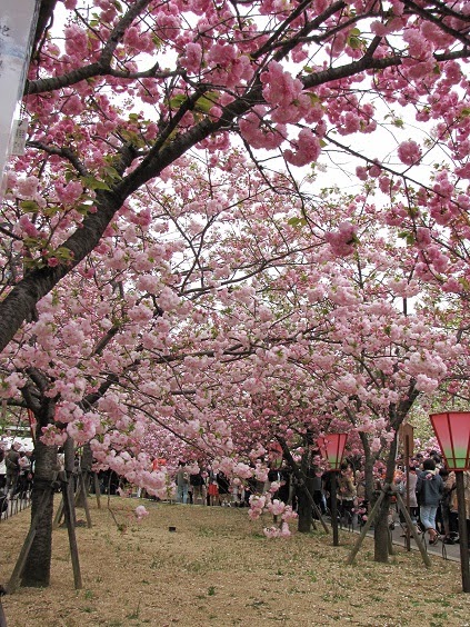 哦! 好漂亮熱鬧綻放的各色櫻花,美不勝收,讓人目不暇給..