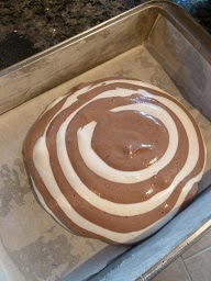 緊接著在蛋黃糊中間放入三大匙的可可糊